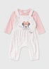 Baby 2 Piece Pink Minnie Mouse Print Dungaree Set (Newborn-12mths)
