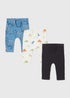 Learn moreThis set comprises three versatile leggings: a lively white pair adorned with dinosaurs all over, a classic plain black pair, and a charming blue pair featuring dinosaur outlines throughout. Crafted from comfortable and flexible fabric, these leggings provide freedom of movement for all his activities. Mix and match these fun leggings to create various cool and playful looks, ensuring both style and comfort for your little dinosaur enthusiast. Whether for playtime or everyday wear, these leggings offer a dino-mite addition to his wardrobe.