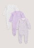 Baby 3 Pack Lilac Floral Sleepsuits (Tiny Baby-18mths)