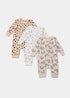 Learn moreFashioned with soft cotton fabric and featuring neutral ecru and cream base colours, this trio pack comes with magical rainbow and playful black spot/dash prints for excellent versatility. With asymmetrical zip up fronts for easy nappy changing and footless designs to free little feet, they're sure to provide ample comfort.