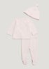Learn moreAdorn baby in this cute and cosy set on those pesky winter days. Perfect for staving off seasonal chills, the pack is crafted from a soft pink cotton blend and comes complete with asymmetrical popper fastenings to the top, as well as the perfect amount of stretch to the matching bottoms. The best bit? The set is finished with a toasty hat to coordinate their look further.