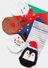 Learn moreAdd playful festive characters to baby's holiday season wardrobe with this delightful multipack. It includes 4 pairs of socks in green, red, navy and grey, each providing soft and stretchy comfort all day long. With plain, stripe and snow print variations, the socks are finished with Santa, a reindeer, a snowman and a penguin - all sure to make anyone smile.