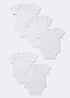 Make sure baby has everything they need to see them through their days with this handy multipack. It includes 5 bodysuits, each made with 100% cotton for maximum cool comfort on delicate skin. Featuring white bases for a classic appearance, they're completed with easy breezy short sleeves and popper fastenings for extra practicality.