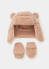 Baby Beige Borg Trapper Hat & Gloves Set (Newborn-24mths)