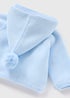 Give your little one a cosy layer to beat the chill in our super-soft blue borg-lined knitted cardigan. This layering piece will keep them snug and stylish, perfect for those days of adventure. The blue colour adds a pop of colour to their outerwear while the 100% cotton outer layer ensures a soft and cosy feel. The borg lined inside further ensures extra added warmth combined with the hood for a snuggly wear. The added detailing of the pom pom on the hood and the wood look buttons up the front makes this cardigan a stylish and comfortable addition to their wardrobe.