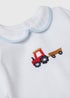The light blue velour suit features subtle blue highlights for an extra touch of charm. Adorning the front is an adorable illustration of a tractor, adding playful character. Crafted for both comfort and style, this sleepsuit is perfect for your baby's sweet dreams.