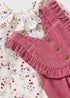 Learn moreThis adorable two-piece set is perfect for your little one's autumn and winter wardrobe. The pinafore set is crafted from soft and durable corduroy fabric, while the top is crafted from 100% cotton for a soft feel. The pinafore features mock wood buttons and frill detailing for an adorable look. The top features a floral all over print and a frill neckline detailing to create the perfect two piece set.