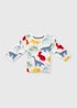 Roar in style with our baby cream dinosaur t-shirt! This playful long-sleeved t-shirt features an eye-catching all-over dinosaur print that will make your little one the star of the playground. Crafted from soft and durable material, this t-shirt ensures all-day comfort and endless adventures. Pair with a denim jacket and jogging bottoms for the perfect cosy everyday look for playground adventures.