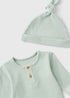 Learn moreOur adorable bodysuit & hat set is a must-have for your little one's wardrobe. This set features a comfortable bodysuit with ribbed detailing and a matching hat, all in a stylish shade of green. With hidden poppers in the gusset, changing your baby is made easier. The added detail of 2 buttons at the collar makes this a stylish piece while still being comfortable for your little one.
