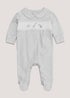 Elevate everyday dressing with this plush sleepsuit. Styled in grey, the dreamy design features delicate safari embroidery and smocking to the chest, alongside a smart collared neckline for a traditional finish. Practical functions include popper fastenings to the back and legs, built-in feet and turn-back scratch mitts on sizes up to and including 3-6 months.