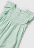 A delightful blend of comfort and style for your little one, this romper has been Crafted from soft, breathable fabric, ensuring maximum comfort and making it ideal for all-day wear. The eye-catching design features delicate printed patterns on the ruffled sleeves, adding a touch of elegance. With its easy-to-wear structure and snug fit, this romper is not only comfortable but also makes dressing up a breeze. The mint color offers versatility and can be paired with various accessories for different occasions.