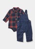 Baby Navy Cord Dungarees & Check Shirt Bodysuit Set (Newborn-23mths)