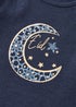 Celebrate baby’s very first Eid in style with this lovely first Eid sleepsuit. Made from beautifully soft, breathable cotton, this sleepsuit is designed to keep your little one comfortable all day and night. The classic navy colour is complemented by a charming "Eid” detail, making it a perfect keepsake for this special milestone.