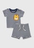 Baby Navy Lion Waffle Stripe Top & Shorts Set (Newborn-23mths)