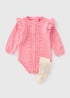 Baby Pink Cable Knit Romper with Tights (Newborn-23mths)