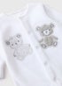 Snuggle your little one in the utmost comfort and style with our Baby White Bear Velour Sleepsuit. Crafted from premium soft velour, this sleepsuit guarantees a peaceful and cosy slumber for your precious baby. Featuring an adorable grey bear design, this sleepsuit will make bedtime a delightful experience.
