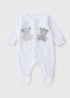 Baby White Bear Velour Sleepsuit (Newborn-12mths)