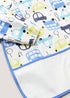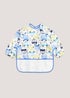 Perfect during the weaning stage, this practical coverall bib will help keep mess to minimum. Designed to help protect their outfits from spills and stains, this handy wipe-clean design features long cuffed sleeves and a long front. A riptape fastening to back ensures easy on/off. The bib features a white base with a fun blue car pattern for added sweetness.