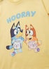 This vibrant yellow tee features everyone's favourite animated Blue Heeler pup, Bluey, and her sister Bingo, ready to celebrate Easter. The playful "HOORAY" adds a touch of excitement, making it the ideal wear for Easter egg hunts and festive playdates. Made from soft, breathable fabric ensuring maximum comfort for your little ones as they embark on their playful adventures.