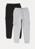 Boys 2 Pack Black & Grey Cargo Joggers (4-13yrs)