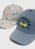 Boys 2 Pack Blue Dino Club Caps (3-10yrs)