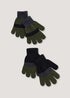 Boys 2 Pack Navy & Khaki Stripe Magic Gloves