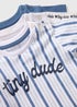Learn moreAdd some style and comfort to your little one's wardrobe with this Boys 3 Pack Blue Preppy T-Shirt set. This set includes three adorable t-shirts that are perfect for any occasion, from playtime to naptime. Each t-shirt is made from soft and breathable cotton fabric that is gentle on your baby's skin. The t-shirts feature a round neckline with easy-to-button fasteners for quick and hassle-free dressing. The t-shirts come in three different designs: a solid blue one, a white one with blue stripes, and a white one with a cute "tiny dude" print. Mix and match these t-shirts with jeans, shorts, or joggers for a variety of looks. Whether your baby is a tiny dude or a big boy, he will love wearing these t-shirts all year round.