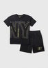 Boys Black NY T-Shirt & Shorts Set (7-15yrs)