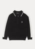 Learn morePerfectly bridging the smart/casual gap, this unique polo shirt will make a fine addition to any young man's wardrobe. Soft and stretchy, the cuffed sleeves provide an added dash of snugness. Styled in black, the white trims to the arms, charming collar and chest ensure a great contrast. To finish, the zip to the front makes on/off that bit easier. Pair the look with joggers.