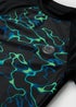 This black rash vest features eye-catching green swirls on the body, adding a trendy touch to his look. Crafted as a rash vest, it provides both style and sun protection, making it ideal for outdoor and water activities. The black and green colour combination creates a dynamic and modern aesthetic.