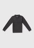 This charcoal long sleeve polo shirt from our boyswear fashion department is the height of casual cool. Its soft cotton rich blend fabric with a hint of stretch ensures supreme comfort, while the ribbed collar and cuffs add a touch of sophistication. The two-button placket allows for easy dressing and a relaxed look. This polo shirt can be dressed up with trousers and shoes for a formal occasion or dressed down with jeans and trainers for a casual everyday look.
