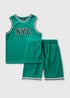 Boys Green Basketball Vest & Shorts Set (7-12yrs)
