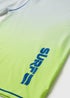 This short-sleeve shirt boasts a striking bright green to white ombre design, accented with cool blue lines for a trendy touch. Crafted for both comfort and functionality, this swim shirt ensures he stays protected from the sun while making a splash.