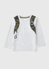 Learn moreThe grey backpack print t-shirt is a must-have for your little one's wardrobe. This top features long sleeves for added warmth and a backpack design that adds a touch of fun and adventure to their everyday look. With a green camo backpack design with orange detailing your little one is sure to love this t-shirt for all their playground adventures.