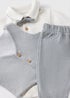 Introducing our must-have Boys Herringbone Smart Top & Trousers Set in a versatile shade of grey. This stylish set is perfect for your little one's smart-casual wardrobe. Made with high-quality cotton, the textured design adds a touch of sophistication. Designed with comfort in mind, your child can move and play with ease. Wear set as one with smart shoes.