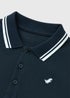 Learn moreIntroducing our Boys Navy Cotton Polo Shirt - a classic, comfortable, and stylish choice for young gentlemen. Crafted from soft, breathable cotton, this navy polo shirt ensures both comfort and durability. The white striped detailing on the collar and sleeves adds a touch of style, while the embroidered emblem on the left chest gives it a signature look. Perfect for casual outings or semi-formal events, this polo combines timeless style with everyday wearability. Your little one will feel both smart and at ease in this versatile wardrobe essential!