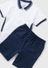 Boys Navy Cut & Sew Polo & Shorts Set (7-12yrs)