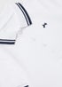This polo shirt features a crisp white hue with black stripes on the sleeves and collar, along with an embroidered motorbike on the chest adding a touch of sporty flair. Crafted with comfort and style in mind, this polo shirt is perfect for various occasions.