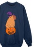 Brands In Capybara Pumpkin Girls Navy Blue Graphic Sweatshirt (Age 3-13 Years)