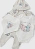 Sleepsuit, Bodysuit, Hat: 100% Cotton. Bib: Front 100% Cotton Back 80% Cotton 20% Polyester.