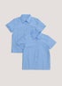 Girls 2 Pack Blue Regular Fit Short Sleeve School Blouses (4-16yrs)