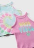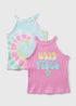 Girls 2 Pack Multicolour Good Vibes Vests (7-13yrs)