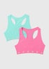 Girls 2 Pack Pink & Blue Racer Back Ribbed Crop Tops (6-13yrs)