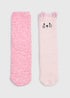 Girls 2 Pack Pink Fluffy Socks (Younger 9-Older 6.5)