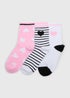 Girls 3 Pack Multicolour Mono Heart Ankle Socks (2-14yrs)