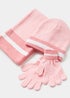 Girls 3 Piece Pink Hat Scarf & Gloves Set (3-13yrs)