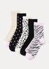 Add a touch of grace to their top drawer with this five-pack of socks. Cut to ankle lengths to provide a cosy bit of coverage, they come in a gorgeous mix of cream, pink and black with elegant leopard and heart prints. Soft and stretchy, they have every weekday covered!