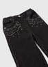 Learn moreDesigned for the young fashionista, these black embellished jeans are crafted from a cotton rich denim that ensures both comfort and durability. The charming embellishments along the pockets add an extra dash of style, making them a must-have for their everyday wardrobe. Finished with meticulous attention to detail, these jeans features a straight leg style which creates a comfortable and durable pair of jeans for all their adventures. Pair with a t-shirt for a casual and fun everyday look or pair with a sparkly top for a party look.