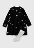 Girls Black Heart Knitted Dress & Tights (1-7yrs)