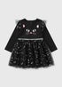 Learn morePurr-fectly playful and full of charm, the Girls Black Mesh Cat Dress is made for little ones who love a touch of feline fun. Featuring a soft black bodice with an adorable cat face detail and a twirl-worthy mesh skirt, this dress is ideal for parties, dress-up days, or adding some whiskered magic to everyday wear. With comfy long sleeves and sparkly accents, it’s as stylish as it is fun, sure to be her new favourite outfit for every occasion.